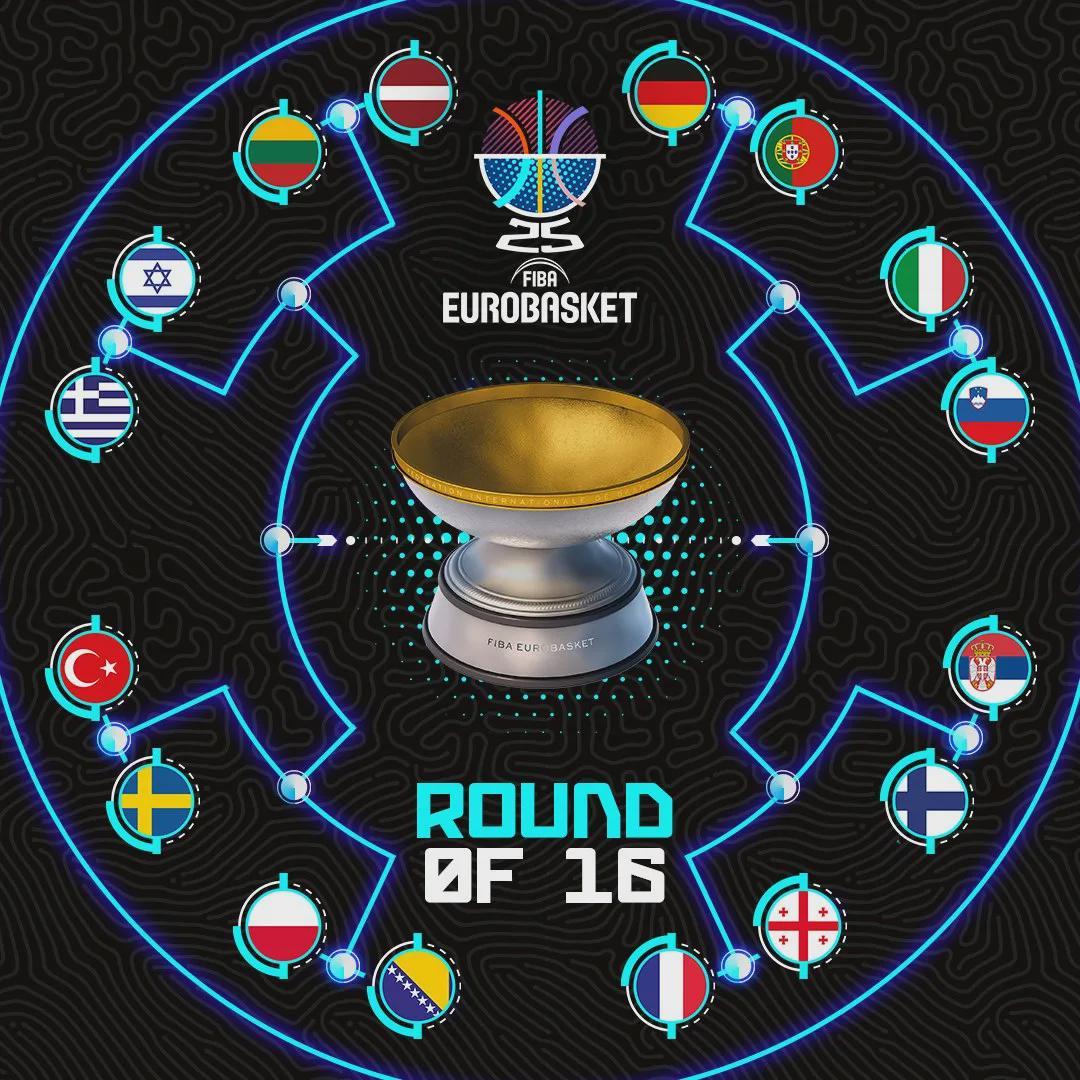 如此一来,本届欧锦赛的16强正式确定,16进8的淘汰赛对阵如下: